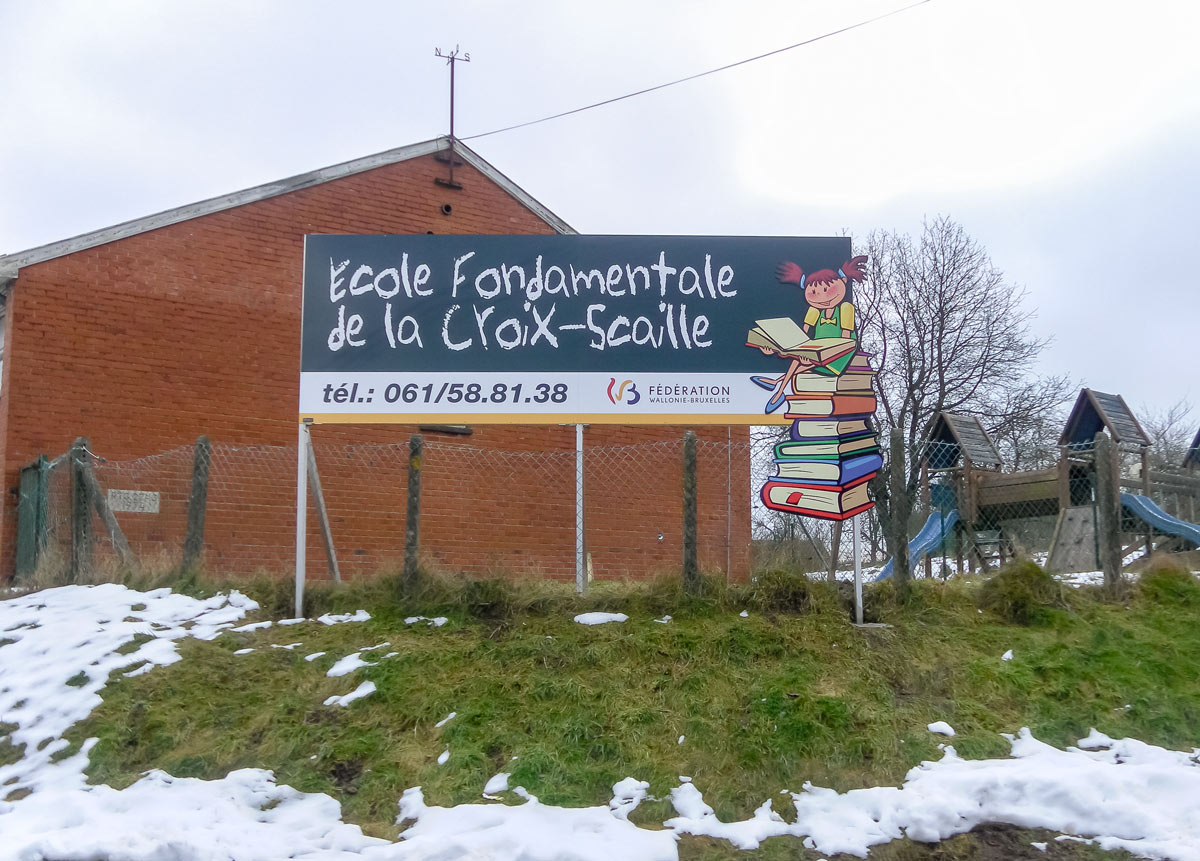 Pour l’École fondamentale de la Croix-Scaille située à Gedinne, Graphic Dimension a conçu et réalisé un panneau d’entrée destiné à identifier clairement l’établissement et à améliorer sa visibilité depuis la voirie.